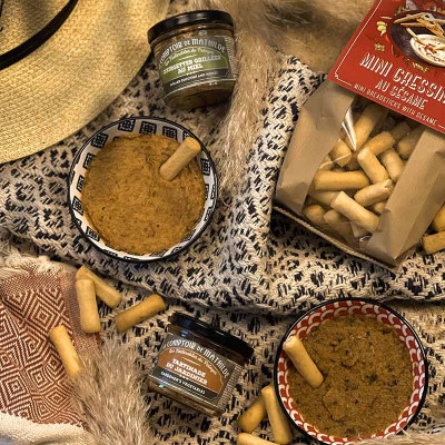 Verlieben Sie sich in unsere Mini-Sesam-Grissini, köstliche knusprige Stäbchen mit leichter goldener Textur. Perfekt für den Aperitif, um in einen Aufstrich zu tauchen, mit Käse zu servieren oder einfach zum Knabbern, begeistern diese handgefertigten Grissini durch ihre Einfachheit und ihren zart gerösteten Geschmack.