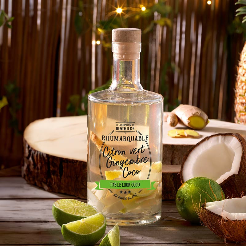 Rechtliche Bezeichnung : Spirituosengetränk mit weißen Rum, Limette, Ingwer und Kokosnuss