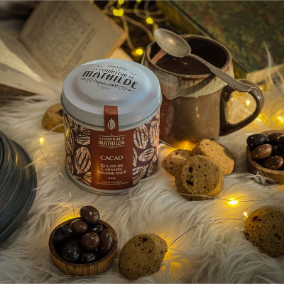 Cacao trozos de caramelo mantequilla salada, increíble matrimonio de un cacao derretido con la dulzura de los trozos de caramelo mantequilla salada