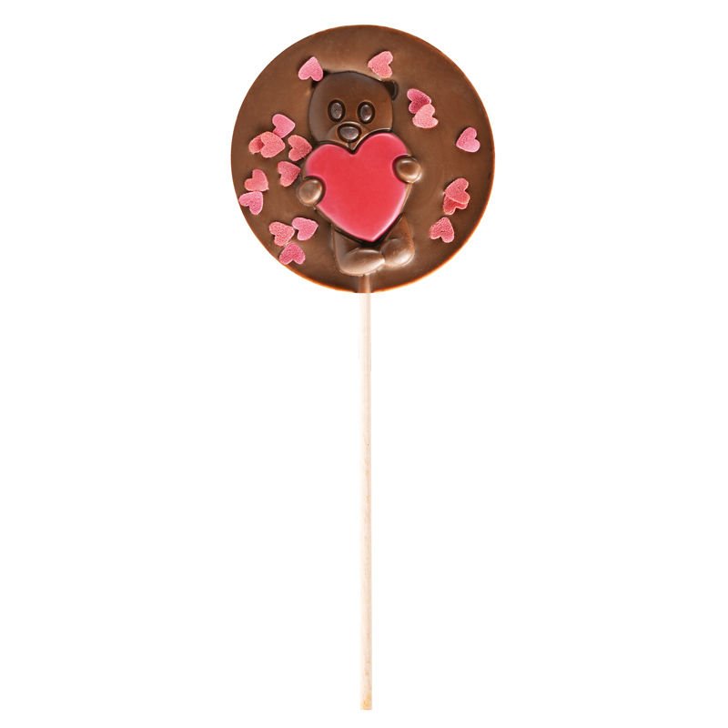 Declara tu amor con golosina gracias a nuestra paleta de chocolate con leche, su osito de nube de azúcar y sus pequeños corazones de azúcar. ¡Una declaración tierna y apasionada!