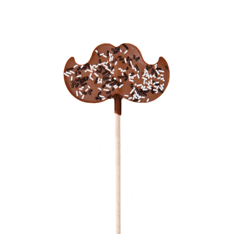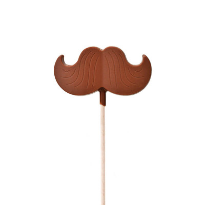 ¡Hazte con esta piruleta original en forma de bigote, moldeada en un delicioso chocolate con leche fundente! ¡Lúdica y golosa, gustará tanto a los más pequeños como a los grandes golosos!
