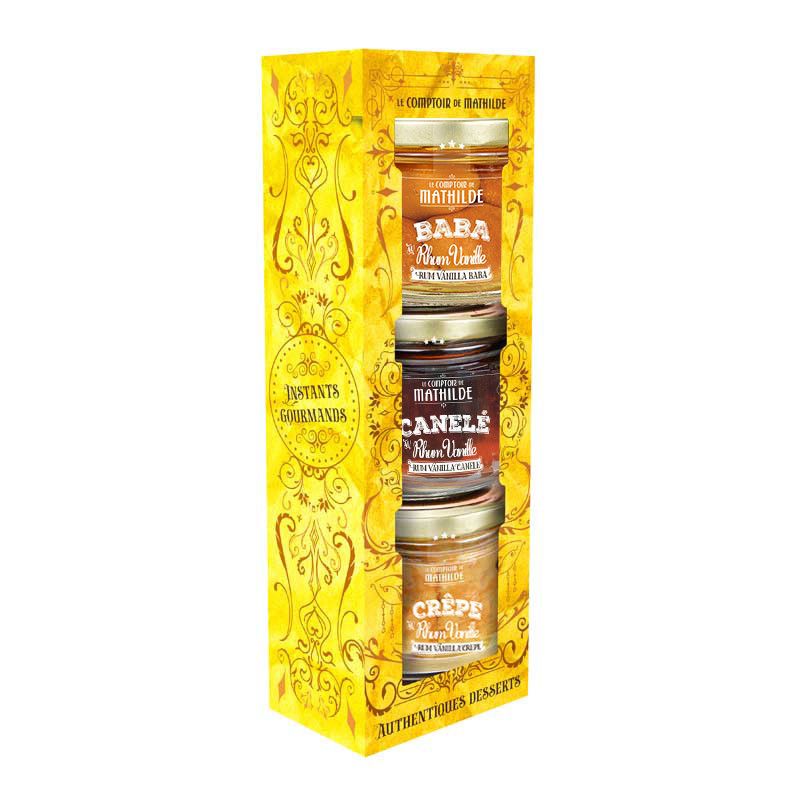 Discover a trio of authentic, soft desserts soaked in delicious alcohols. The baba, this little savarin in the shape of a cork, the canelé, originating from Bordeaux, and the delicious rum and vanilla crepe.