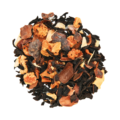 Let yourself be seduced by this refined blend of black tea, enriched with the deep aromas of cocoa and the sweet delicacy of pear. Each cup mixes the robustness of black tea with the indulgence of chocolate and the fruity freshness of pear.