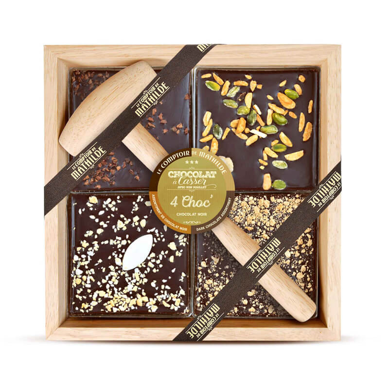 Ingredienti : Cioccolato fondente 89,7% (pasta di cacao, zucchero, burro di cacao, emulsionante: lecitina di SOIA, aroma naturale di vaniglia. Cacao: 56,9% min.), misto di frutta secca 3,4% (NOCCIOLE, MANDORLE caramellato (MANDORLE, zucchero, caramello (zucchero, acqua)), PISTACCHI), scaglie di torrone 2,6% (zucchero, sciroppo di glucosio, MANDORLE 15%, fecola di patate, miele, burro di cacao, bianco d’UOVO, aroma naturale di vaniglia), calisson 1,7% (melone candito (melone, sciroppo di glucosio-fruttosio, zucchero), MANDORLE, arance candite (scorza di arancia, sciroppo di glucosio-fruttosio, zucchero), zucchero, zucchero a velo amidaceo, acqua, sciroppo di glucosio, zucchero invertito (zucchero, acqua), pane azzimo (fecola di patate, acqua), albumi d’UOVA, aroma naturale di vaniglia, aroma naturale di mandorle amare), speculoos tritati 1,7% (farina di FRUMENTO, zucchero, burro (LATTE), zucchero di canna, farina di SOIA, sciroppo di zucchero invertito, agente lievitante: carbonato acido di sodio, cannella, noce moscata), fave di cacao caramellate 0,9% (fave di cacao 70%, zucchero, caramello (zucchero, acqua)).