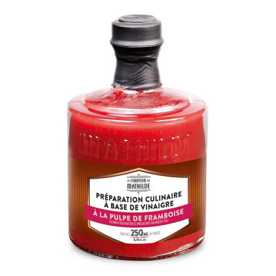 Ingredienti : Aceto di alcol all’8% di acidità 49,5%, polpa di lampone 49,5%, zucchero semolato.