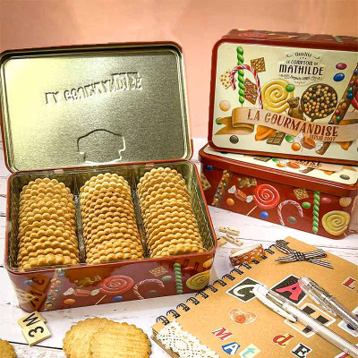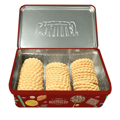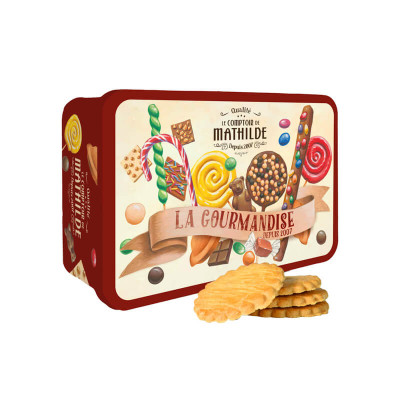Fai scattare per questa carina scatola in metallo, delicatamente illustrata, che contiene deliziosi biscotti al burro puro dal vero gusto. Croccanti e morbidi, queste dolcezze seducono piccoli e grandi per la loro semplicità e generosità.