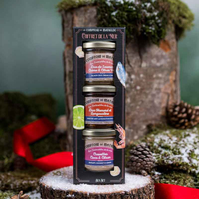 Preparazione a base di crostacei e pesce: MERLUZZO 36%, PANNA, ARAGOSTA americana 15,9%, acqua, concentrato di pomodoro, SCAMPI 4%, fibre vegetali (grano, lino, agrumi), fiocchi di patate, sale di Guérande 0,9%, zucchero, scorza di lime, coriandolo, olio essenziale di limone.