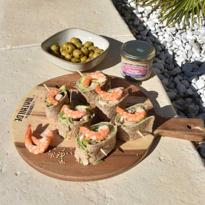 Questo untable d'eccezione abbina sottilmente il carattere nobile del foie gras e la delicatezza dell'astice. Un mix di alta qualità, dai sapori equilibrati e generosi, per un aperitivo chic e goloso.