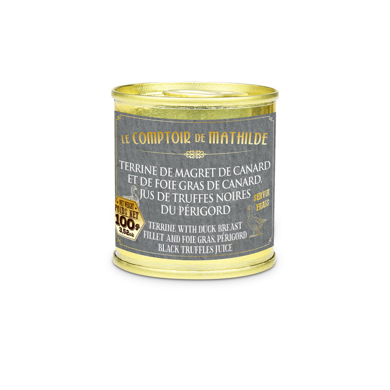 Denominazione legale : Terrina di petto d'anatra e foie gras d'anatra, succo di tartufi nero del Périgord (20% Foie Gras)
