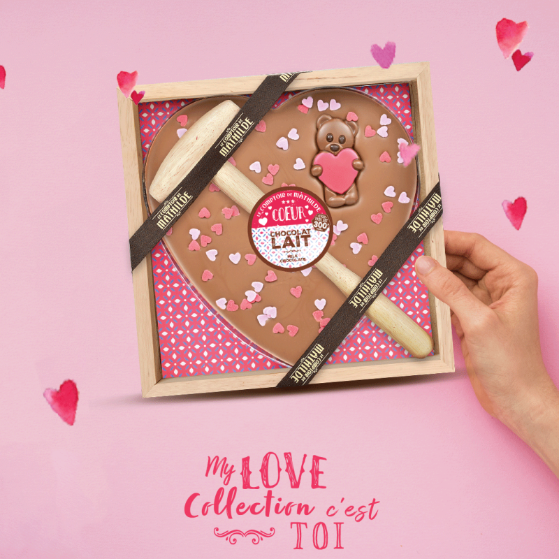 De Mathilde's Counter presenteert haar Love Collection, bedacht om een vleugje zoete tederheid te bieden aan degenen die tellen. Deze hart van donkere chocolade, genereus en verfijnd, is een symbool dat zowel smakelijk als liefdevol is.