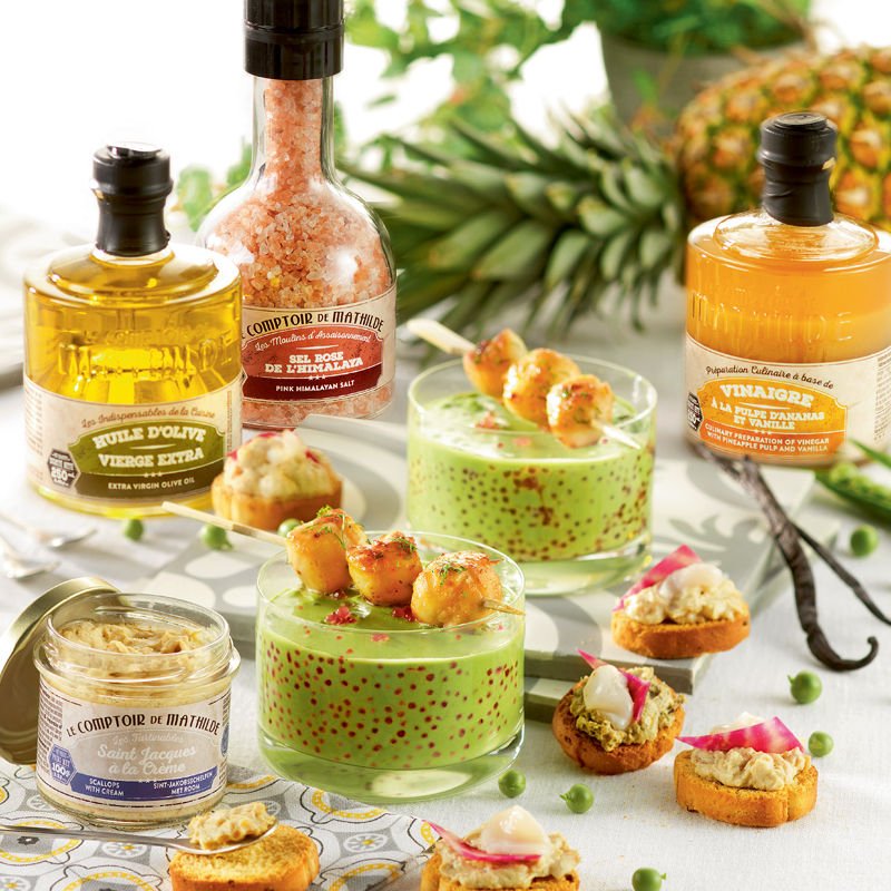 Ontdek een elegante selectie van 4 hartige spreads samengebracht in een even praktische als verfijnde doos. Elke Mathildette biedt u een origineel en smaakvol recept, ideaal om op geroosterd brood te smeren of te delen tijdens een spontane aperitief: